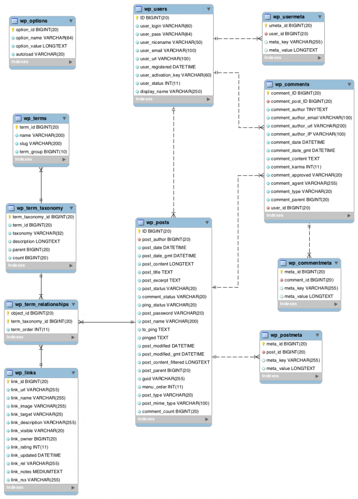 - See if you can figure out how the data and metadata of a typical post, page and comment are broken up and stored in the db.