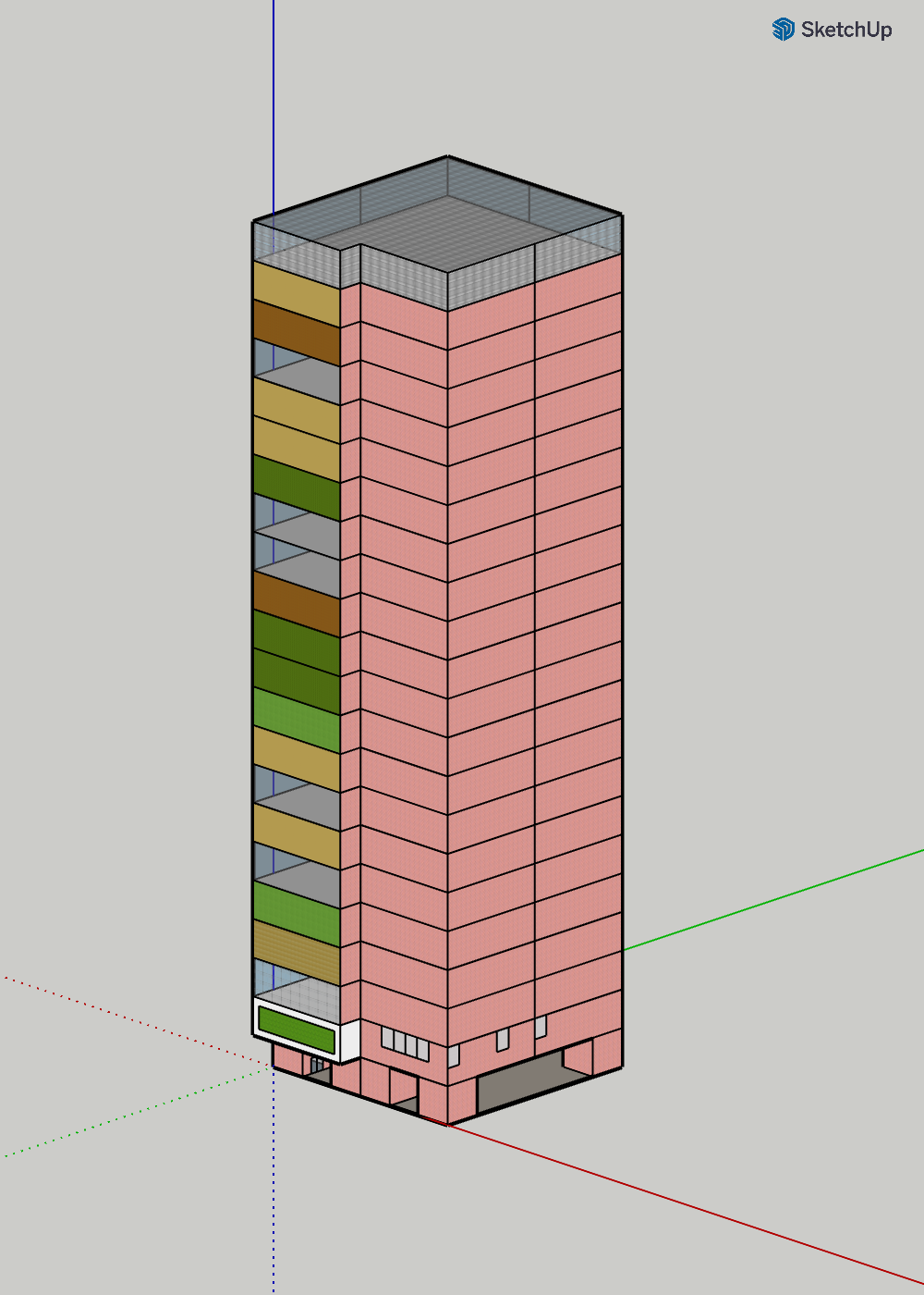 Although SketchUp isn’t hard to use, recreating my childhood home was definitely more difficult than I thought. I lived in a small apartment so I wanted to draw an entire building but focus in on the exterior details of my home. Thus, only the bottom floor has windows and a non-random balcony. SketchUp reminds me of Minecraft, and I think both are excellent platforms for nurturing different people’s graphic design skills. Of course, the former has more accurate measurements and is not limited in the structures it can build, so I think this software would also come in handy for those trying to recreate spaces in order to uncover and better understand certain parts of history.