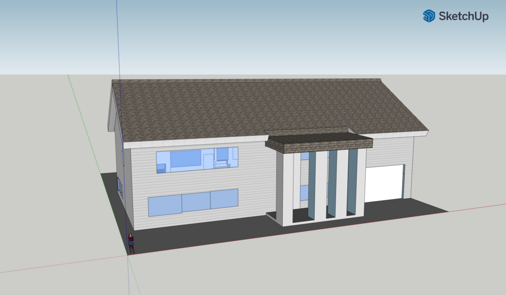 I had a tough time creating a roof using a line through midpoints to raise the roof and using the move function, and I could only move the line on the X and Y axes. I learned that using a computer with a mouse will help with this problem, and I am now going to use a computer with a mouse whenever I use SketchUp. I also got bogged down by the roof, as many smaller elements combine to make the roof.