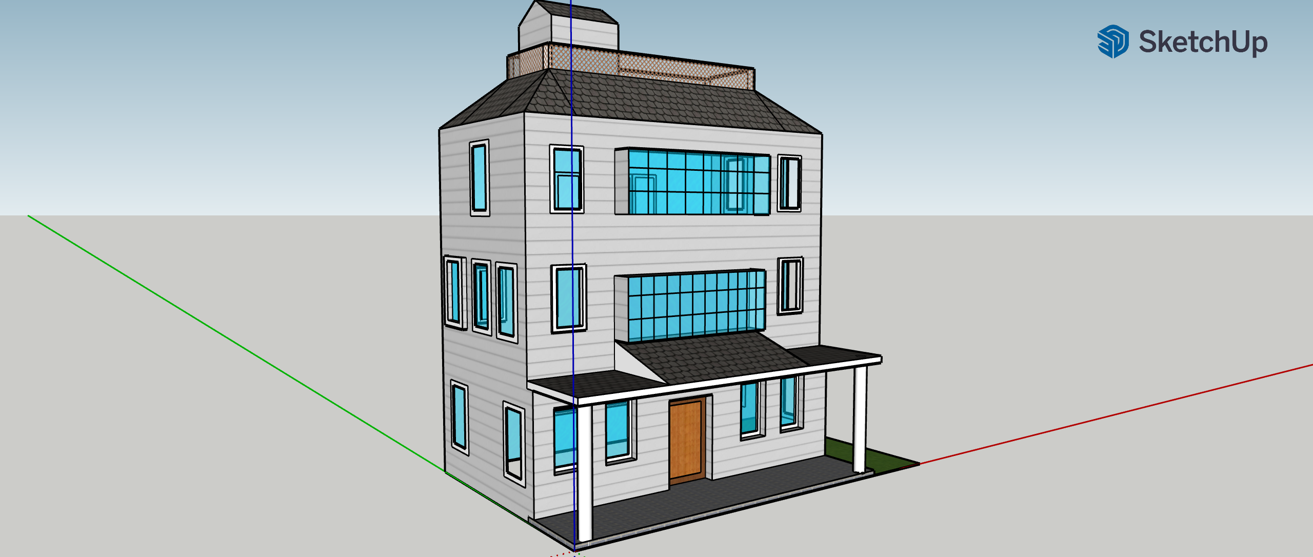 Most of the compromises I made were about simplicity. I really wanted to capture all the unique details and features of my house, but some of them ended up being too complicated or time-consuming to re-create in SketchUp. For example, the back of my house in real life has two balconies. I chose to make these windows instead because I felt that adding the balconies would be too time-consuming, and a similar effect could be achieved by adding more windows, positioned closer together. Throughout my process, I also had to accept that imperfections of my house. As I mentioned above, I struggled to color my side windows and ended up coloring the inside wall behind them instead. After a lot of work trying to fix it, I decided that the coloring could still be seen through the windows and that the windows were a small detail that doesn’t hold all the attention of the viewer. I compromised on making a “perfect” house and instead, came to terms with the mistakes that I had made.
